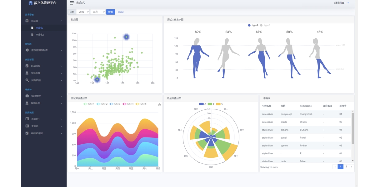 基于自主研發(fā)數(shù)據(jù)采集和治理平臺,形成數(shù)字化醫(yī)院管理數(shù)據(jù)中心,為職能管理人員提供三級醫(yī)院評審指標、績效考核指標、質(zhì)控管理指標等功能;通過商務(wù)智能(BI)分析技術(shù),為醫(yī)院領(lǐng)導(dǎo)層提供決策支持。
